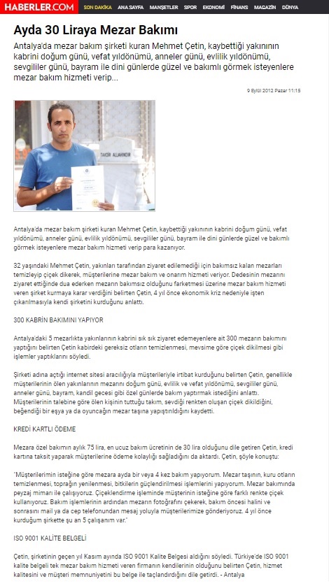 Пресс-релизы, Национальная пресса 14 лет Добавлен первый доля Теги: 30antalyaantalya kabir bakımı mehmet çetinaydaayda 30 liraya mezar bakımıbakımıÇetincomhaberlerkabirlirayaMehmetmezar